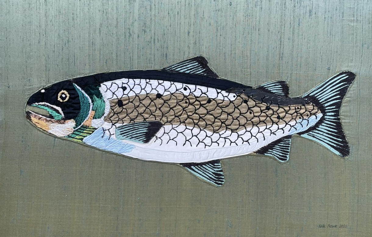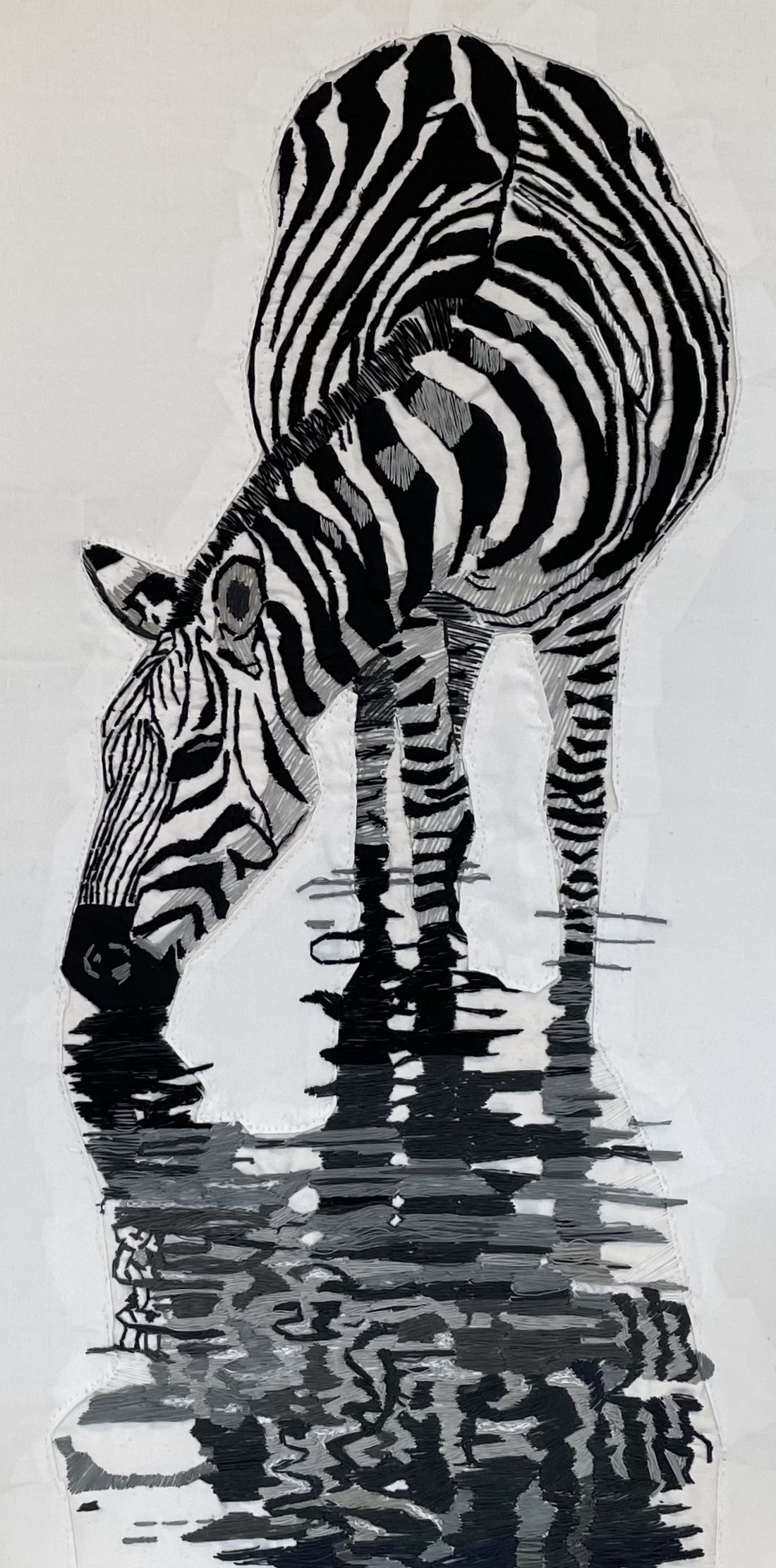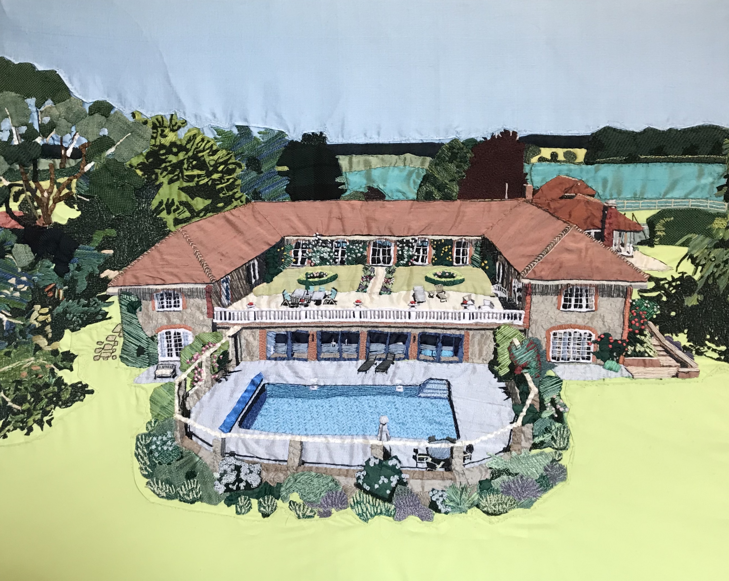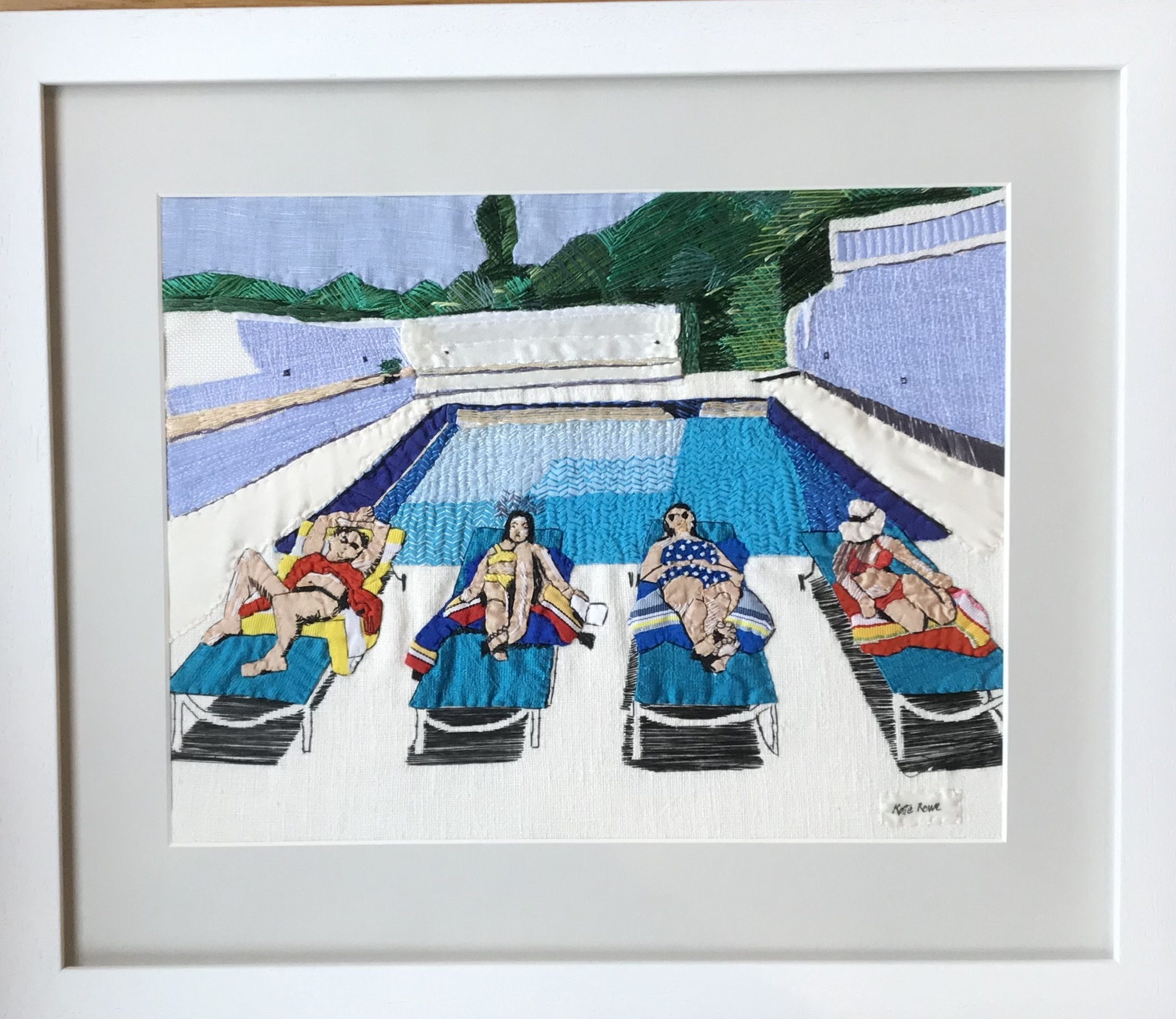 Fabric collage made from silk and other remnants . I was inspired by these crystal spoons in glass in my brother’s house in france .