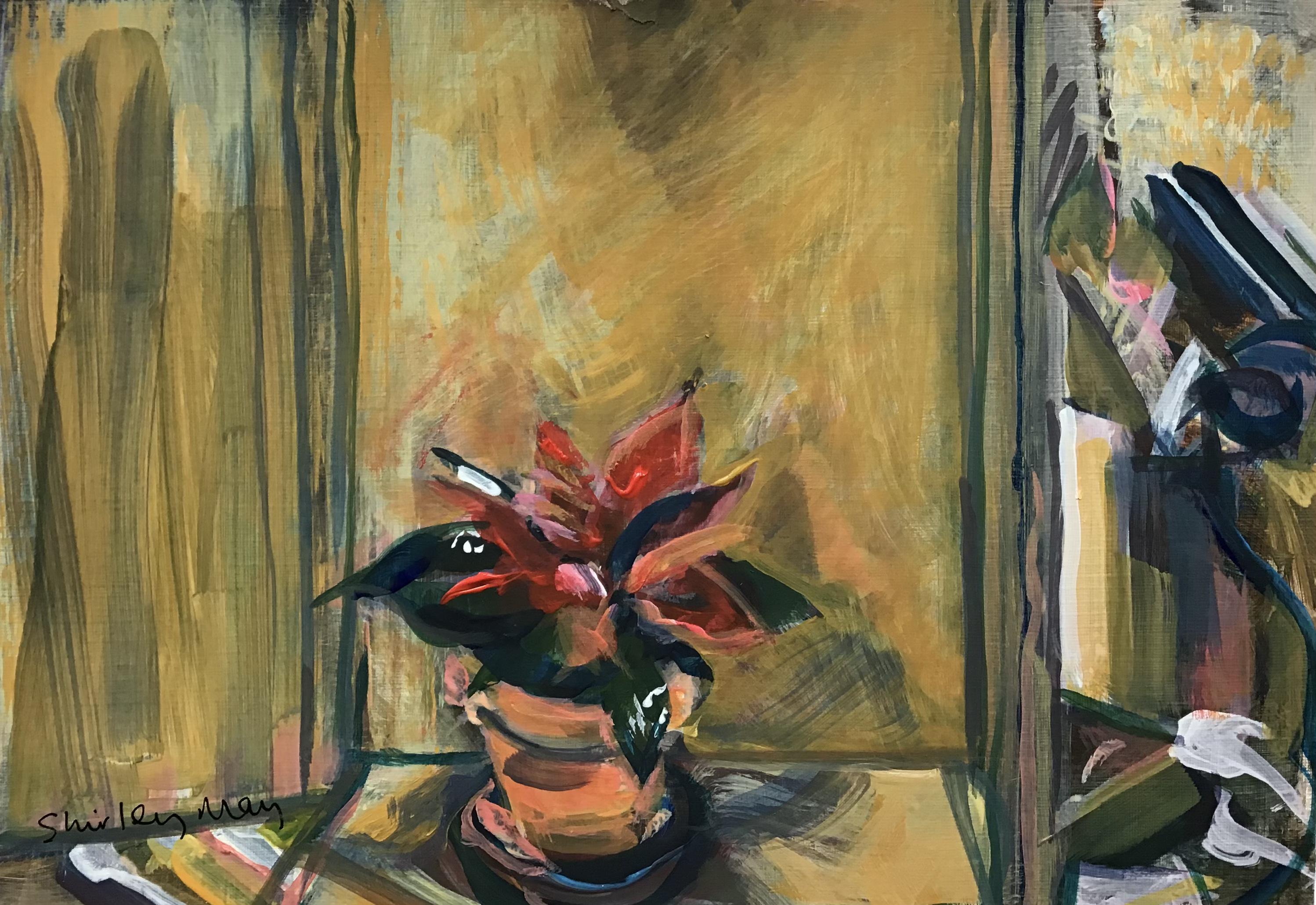 Started oen Plein air with Brighton Painting Group. Worked it up this morning with a limited palette of cerulean, vermilion, quinacridone rose and white.