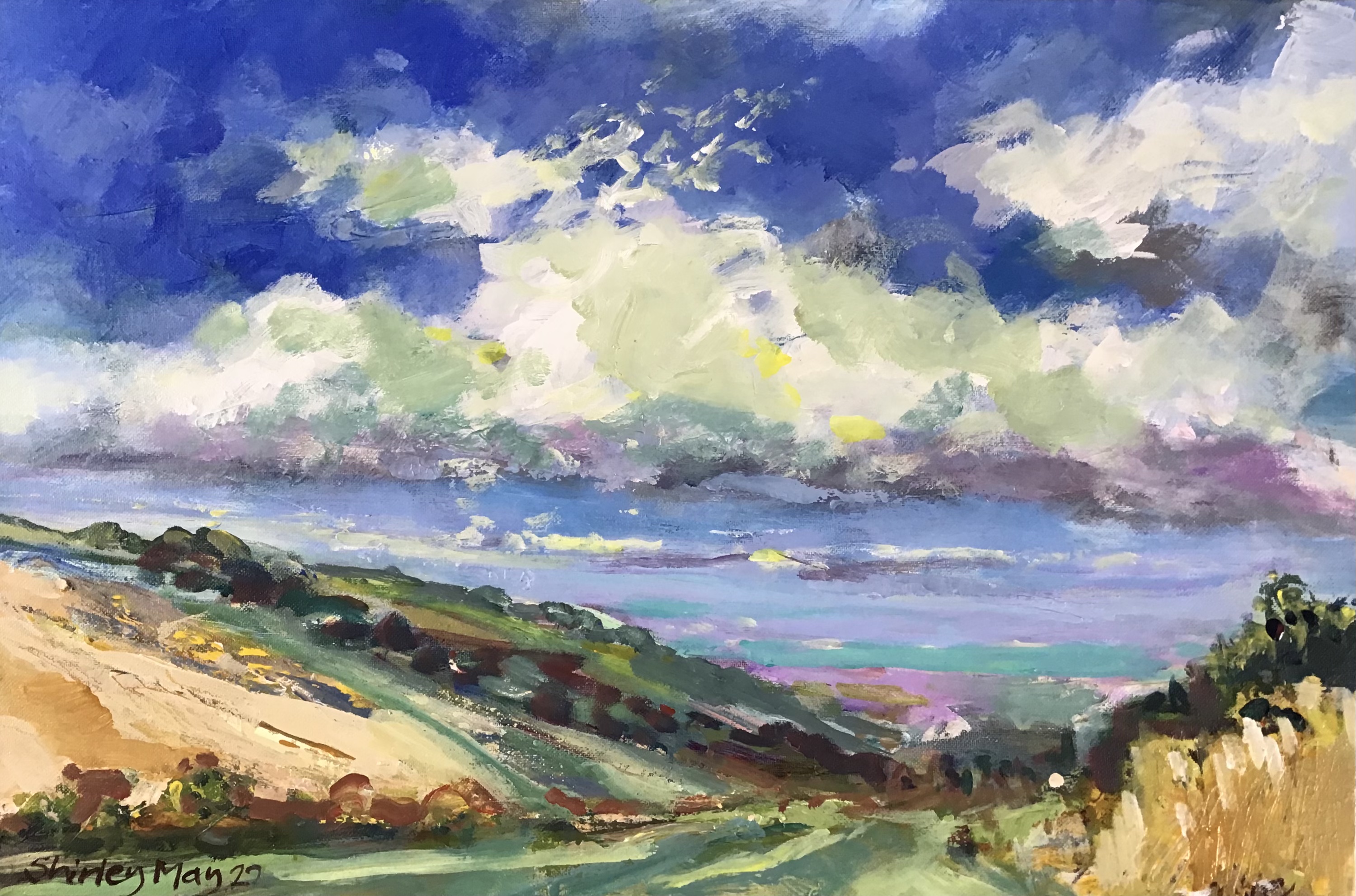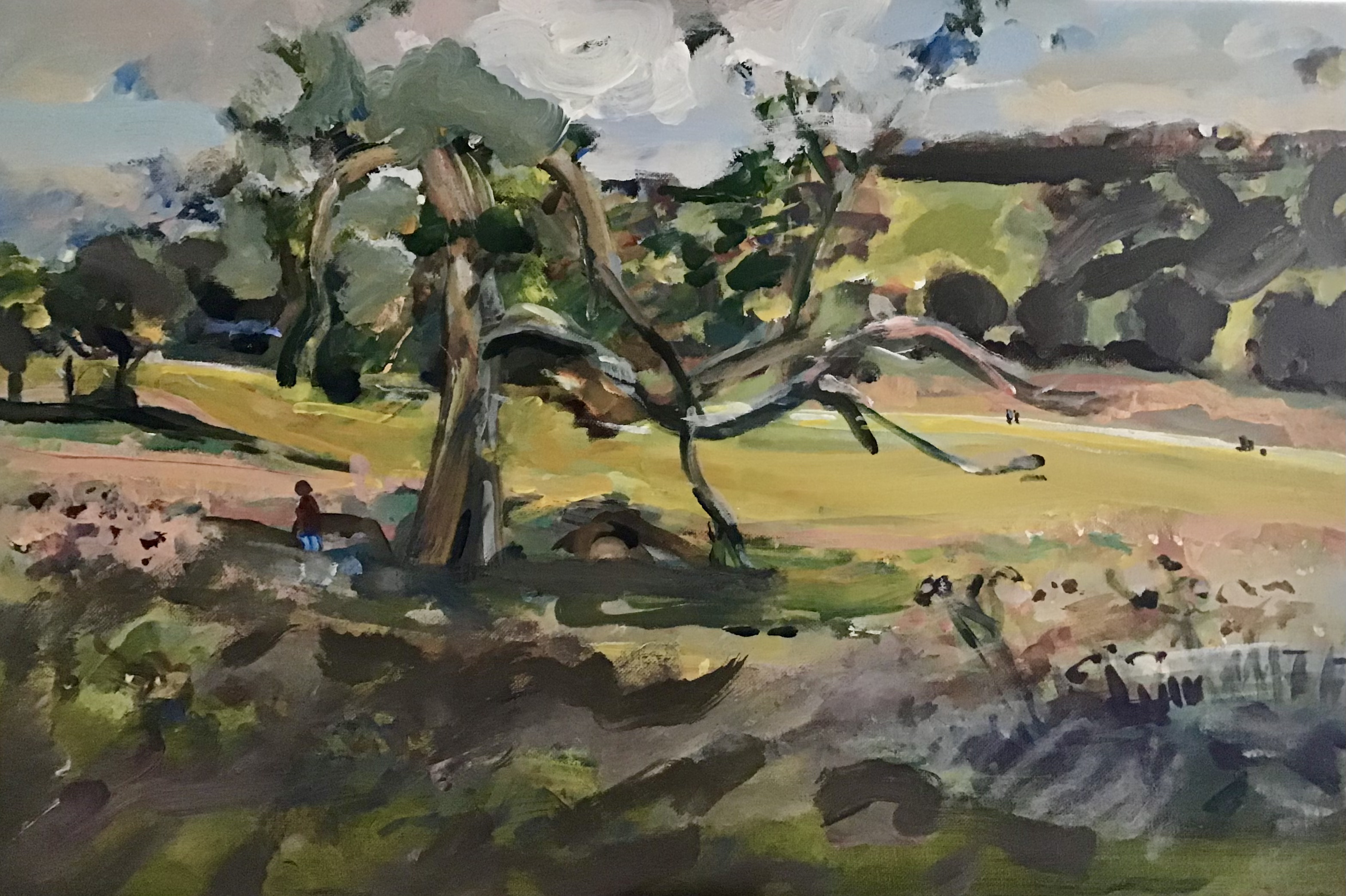 Always loved drawing and painting. Studied biology at UEA, PGCE at Sussex, then part-time art studies at Sussex and Brighton, including printmaking. Before Covid I gave a little weekly watercolour class for 7 years. Now I am using acrylics on canvas and paper en plein air whenever possible.