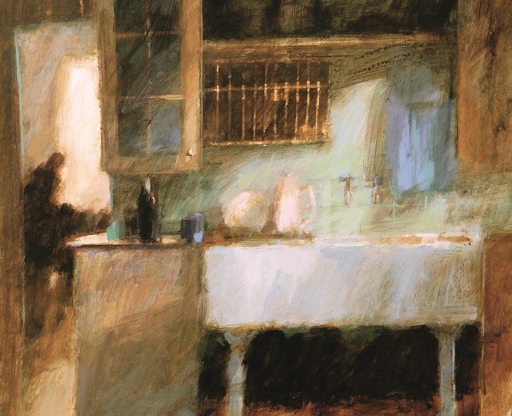 Objects or buildings from the past have often gained character over the years, making them more appealing to Anne, rather than something static and brand new. Nostalgic subjects have a particular atmosphere or specific story. The inspiration for Anne’s interiors rarely comes from her own home. She constructs a composition from multi-reference points within her studio. Using artistic license, paintings are often made from a collection of differing images. Creating the mood follows time spent analysing what first attracted her to the subject. This, then invariably forms the focal point, which often includes that ‘pop’ of colour.