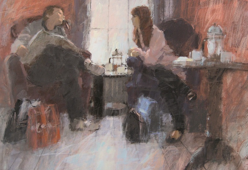 Anne has several paintings on the go at once. Taking a break from a painting gives her an opportunity to re-assess the progress. Moving to another piece of work of a similar subject can often identify answers to any uncertainties within the unfinished work. ‘Speed isn’t the issue for achieving the feeling of spontaneity. Trying not to overwork the brushstrokes is always a key consideration. The trick is, knowing when to stop!’