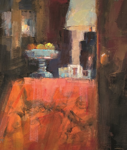 Winner of The Artist magazine award in 2024’s SWA annual exhibition, Anne McCormack’s background in graphics and draughtsmanship stands out. Creating a narrative and capturing a mood has always been her top priority, as well as the desire to pass onto the viewer the image that caught her imagination in the first place. Anne’s considered use of colour and light to describe shape, set the time of day or highlight particular sections or objects in a painting are paramount in creating that all-consuming ambiance.