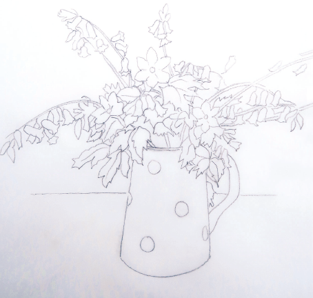 Draw an outline of the flowers and leaves with a B-grade pencil.