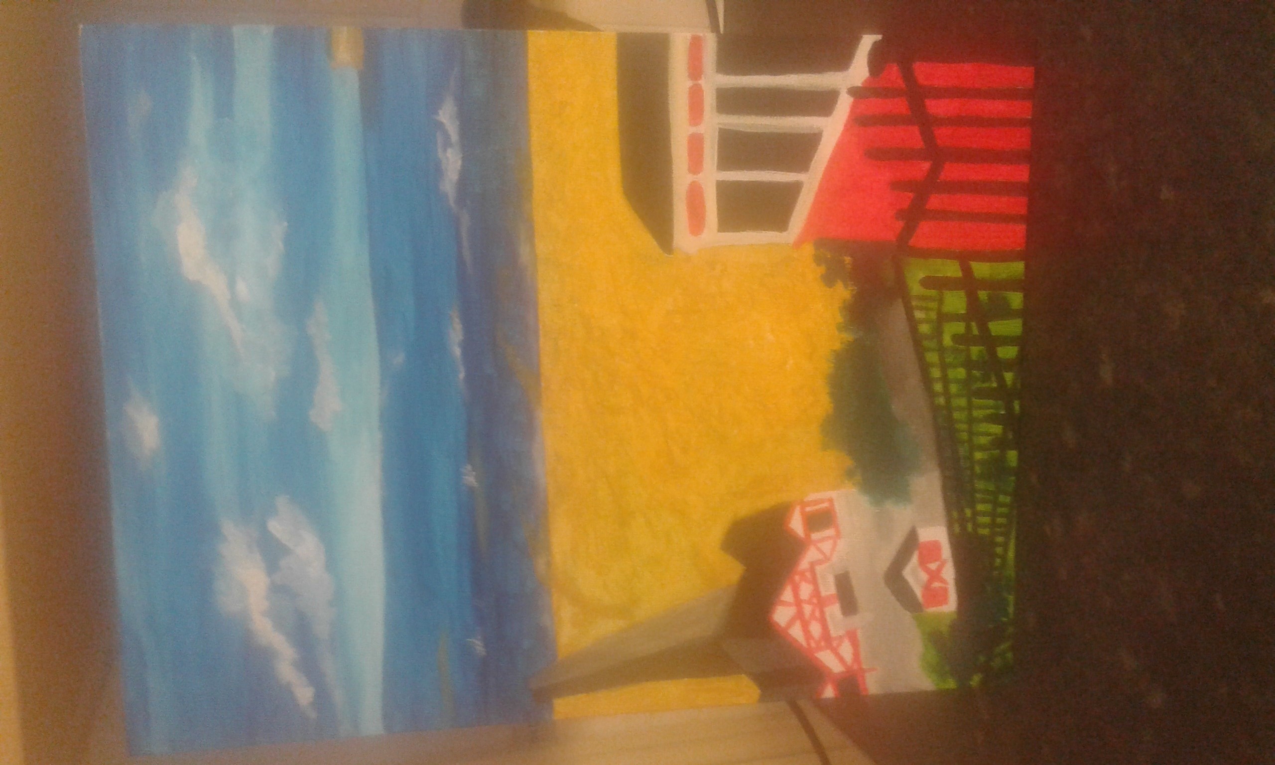 I love painting in bright colours and most of the pictures are out of my own imagination. Acrylic paint is my favourite medium because it always dries fast and if I make a mistake or two I can just paint over it or black the canvas and start over again.I also like to paint in swirly long brush…